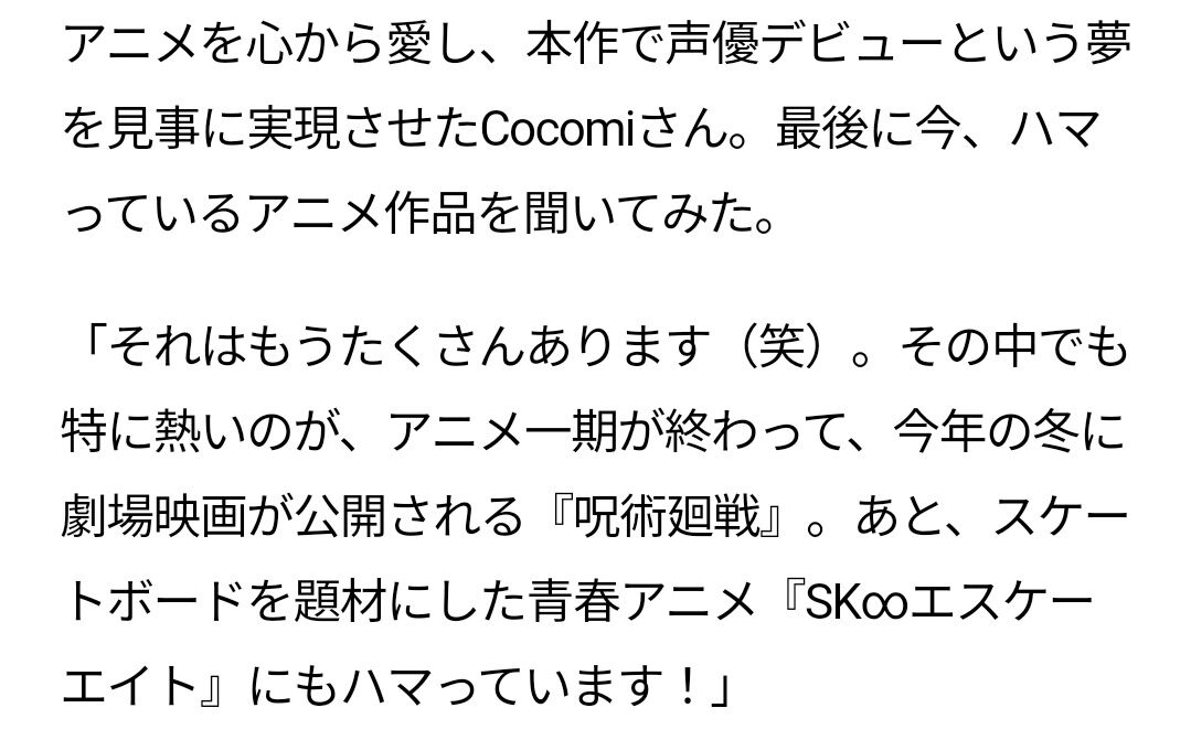 ココミちゃんそんな情報既に知ってて凄い、業界人だね、アニメ化楽しみ、声優するの?