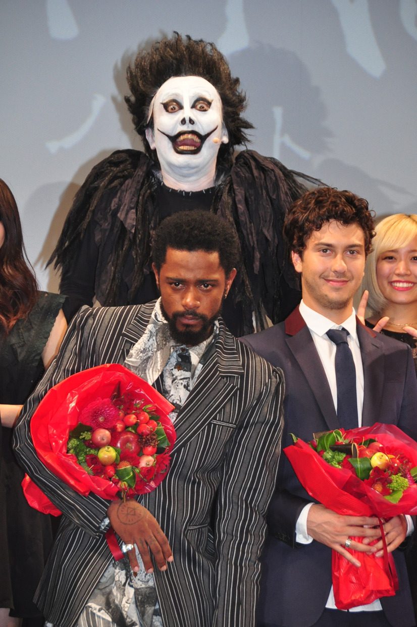 さらに、写真撮影を前に、衣装とメイクで死神リュークに完全になりきった「アンガールズ」の田中さんが乱入! 日本のお笑い芸人のいきなりの登場に、来日キャストたちは、戸惑った様子だったが、田中さんは、自身のなりきり具合について「このクオリティを見てよ! 次回作があったら出してほしい! ハリウッドデビューしたいんだよ!」とアピール。