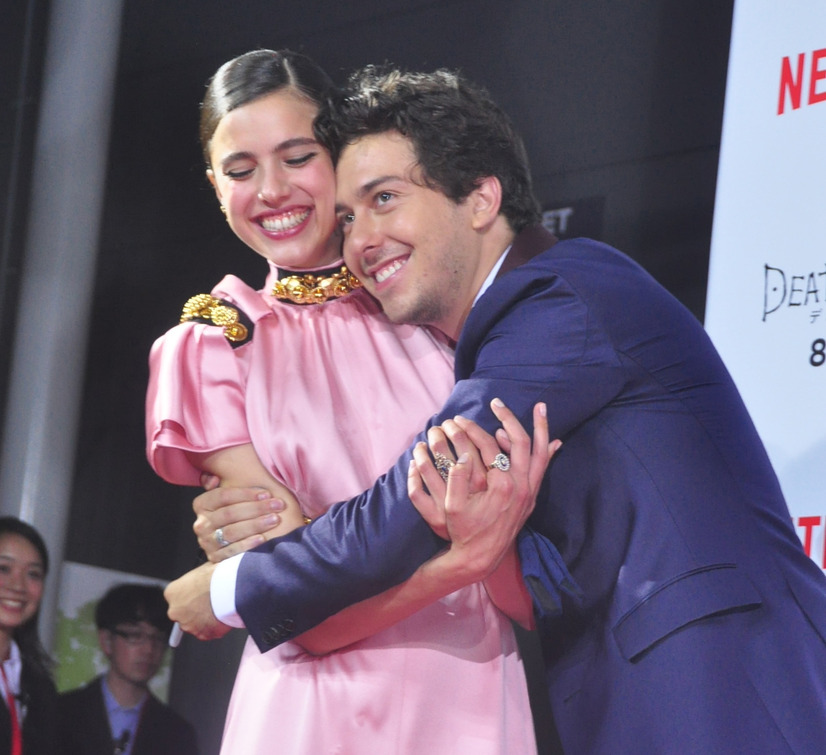 今回、来日したのはエル役のナット・ウルフ、L役のキース・スタンフィールド、ヒロインのミア役のマーガレット・クアリー、アダム・ウィンガード監督、そして人気ドラマ「HEROS/ヒーローズ」でお馴染みで、今回はプロデューサーを務めるマシ・オカ。