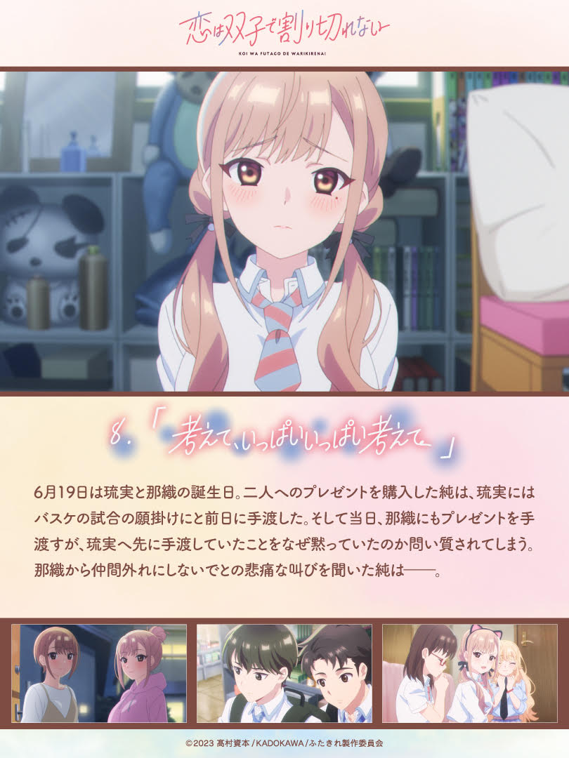 一方、那織は純や慈衣菜、教授、部長を巻き込んで部活の設立を計画する。二人はお互いにそのことを伝えられないまま、時間が過ぎていき……。